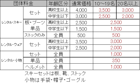 レンタルの一覧を掲載します。団体割引で結構品質も良いので、相場より少し安いと思います。